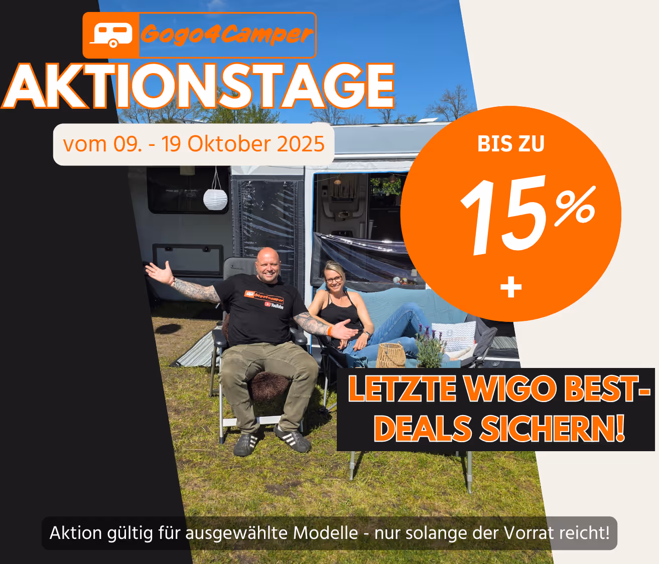 Durch die gemeinsamen Wigo-Vorstellungsvideos bei Gogo4Camper ist Michael in der Campingbranche bekannt. Er berät bereits seit einigen Jahren auf Facebook und in Campingforen zur richtigen Auswahl der Wigo. Diese Beratung, zusammen mit der Bestellung bei Wigo und der Betreuung nach dem Kauf, können wir euch jetzt aus einer Hand anbieten.